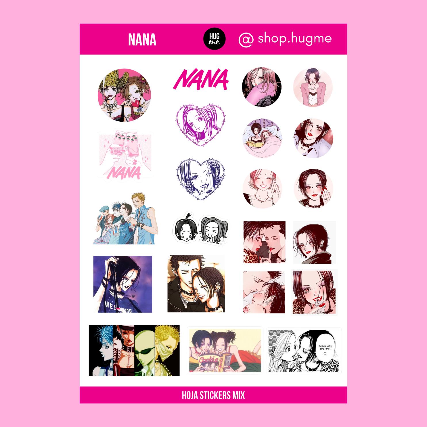 Llena tus páginas de actitud, amistad y estilo con la hoja de pegatinas “Nana”, inspirada en el legendario manga y anime de Ai Yazawa. Una colección llena de energía y nostalgia con diseños chibi de Nana y Hachi, los Black Stones, y elementos que capturan el espíritu del rock, la moda y la amistad. Perfecta para fans del anime, del estilo japonés y de la papelería con carácter y emoción.