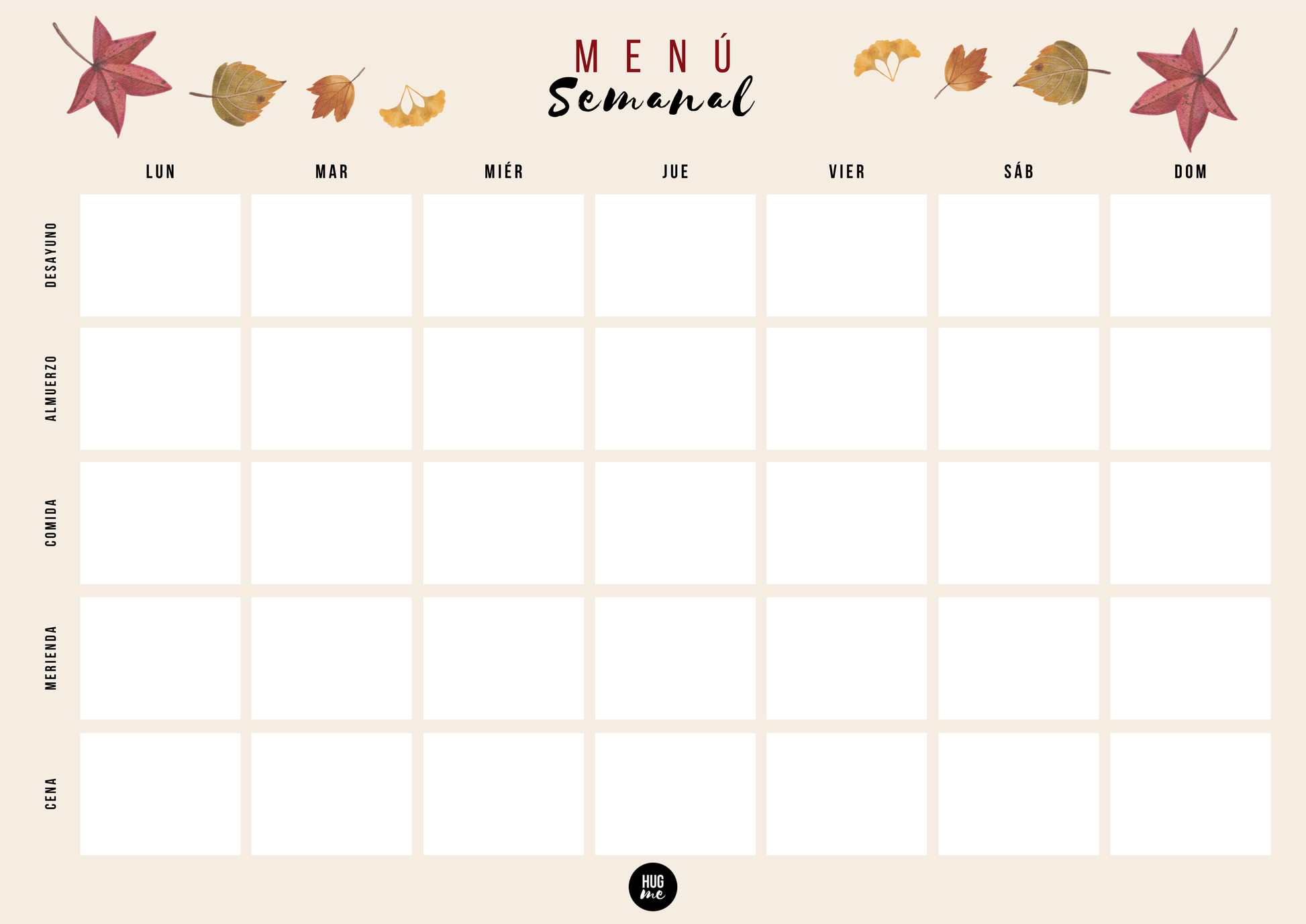 Organiza tus comidas semanales con el Planificador de MenĂș A4 de Hugme. Diseñado para ayudarte a planificar tus menĂșs de forma prĂĄctica y bonita, este organizador te permite anotar tus comidas, cenas y lista de la compra con estilo. Ideal para colocar en la nevera, tu escritorio o añadir a tu carpeta de organizaciĂłn, y asĂ mantener una alimentaciĂłn mĂĄs consciente y equilibrada.